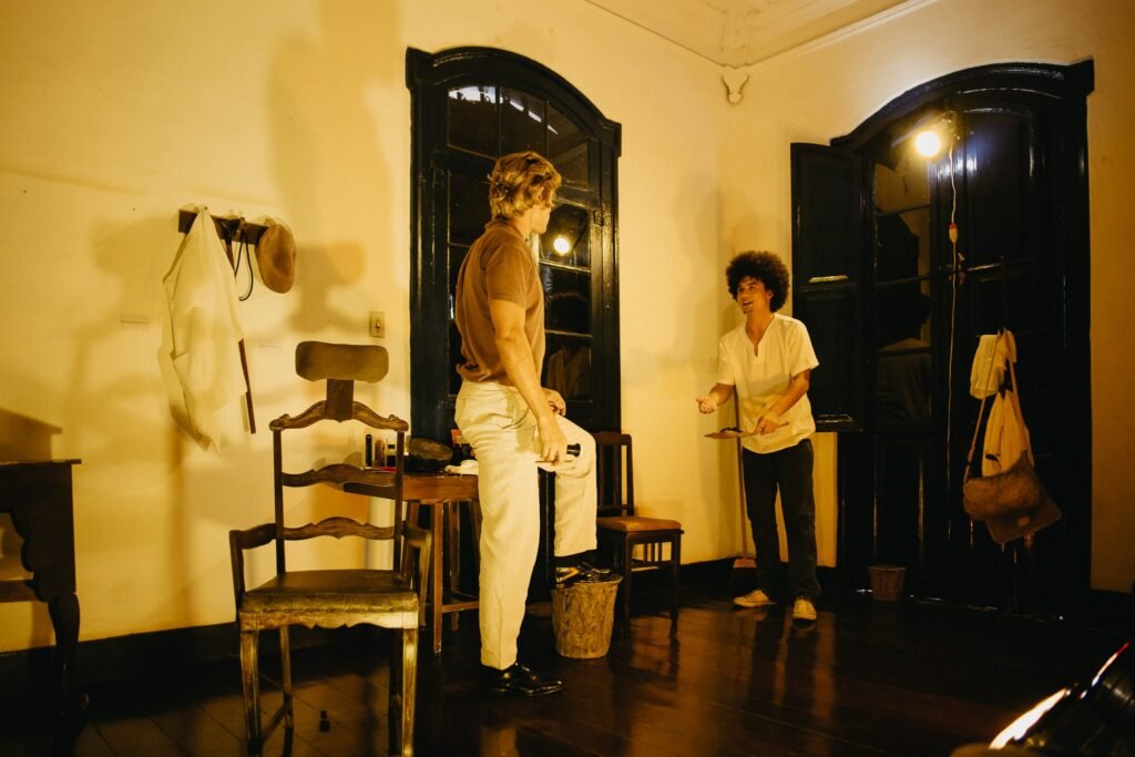 Um barbeiro calado e de gestos calculados recebe um jovem cliente tímido. O que começa como um simples corte de cabelo se converte em uma atmosfera sufocante, marcada por imposições sutis, manipulação psicológica e tensão crescente. É a partir desse enredo que a montagem leva para o Museu da Moda uma experiência teatral intensa, baseada no texto da argentina, Griselda Gambaro. O diretor Hailton Karran conta que o “ponto de partida para a adaptação mineira foi a potência da peça em transformar um espaço cotidiano — a barbearia — em palco para discutir relações de poder, opressão e submissão, estabelecendo um diálogo direto com o contexto político latino-americano e com questões atuais.”